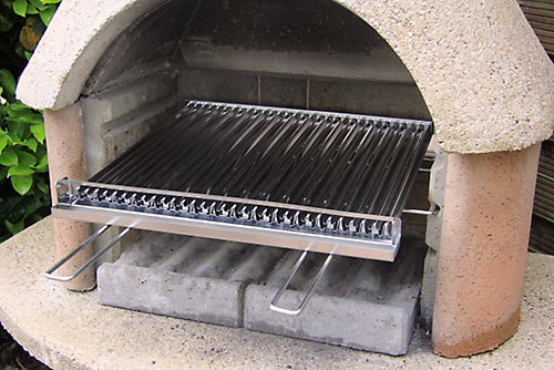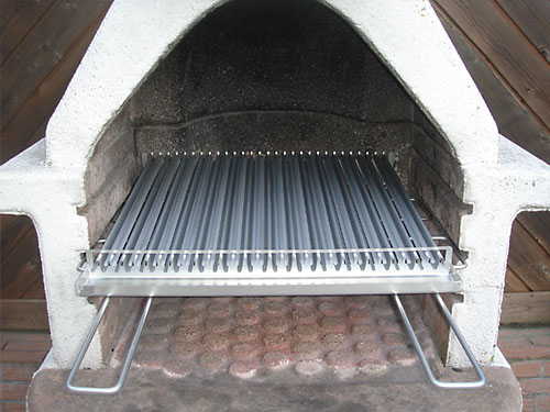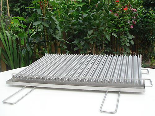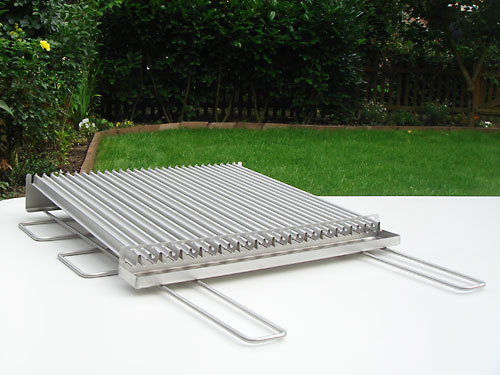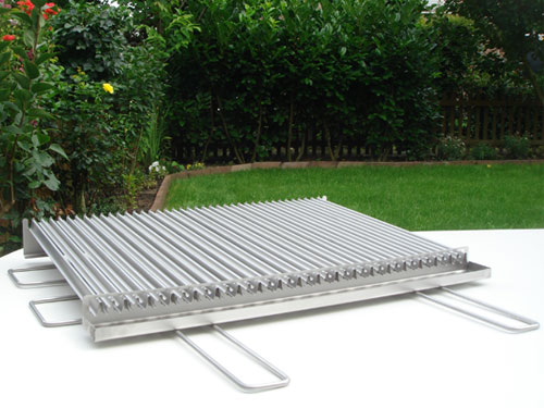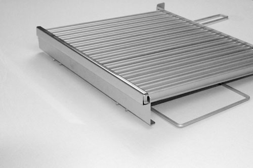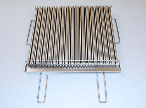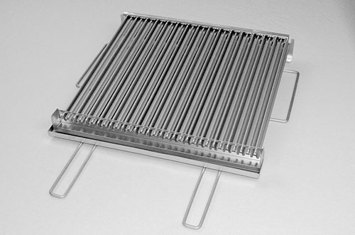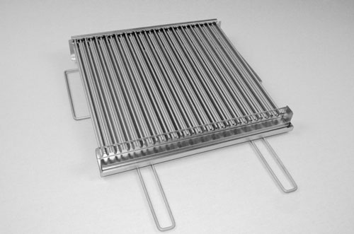Grillrost geeignet für einen Gartenkamin mit einer Breite von 50cm im Feuerraum. Der Grillrost besteht aus zwei Teilen: Einzeln entnehmbaren Grillroststäben und einer Rostauflage mit integrierter Fettauffangrinne und Handgriff.