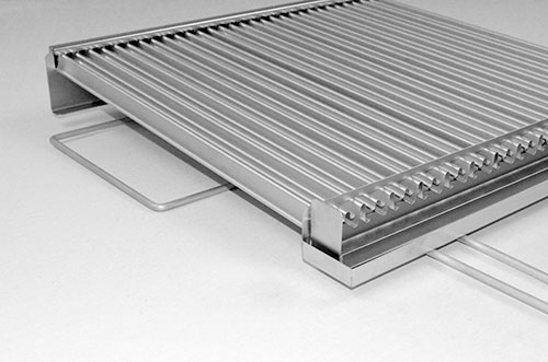 Grillrost geeignet für einen Gartenkamin des Herstellers Buschbeck mit einer Breite von 52cm im Feuerraum. Der Grillrost besteht aus zwei Teilen: Einzeln entnehmbaren Grillroststäben und einer Rostauflage mit integrierter Fettauffangrinne und Handgriff.