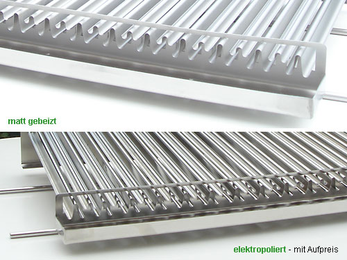 Der Aufpreis für die elektropolierte Ausführung beträgt pro Grillrost: